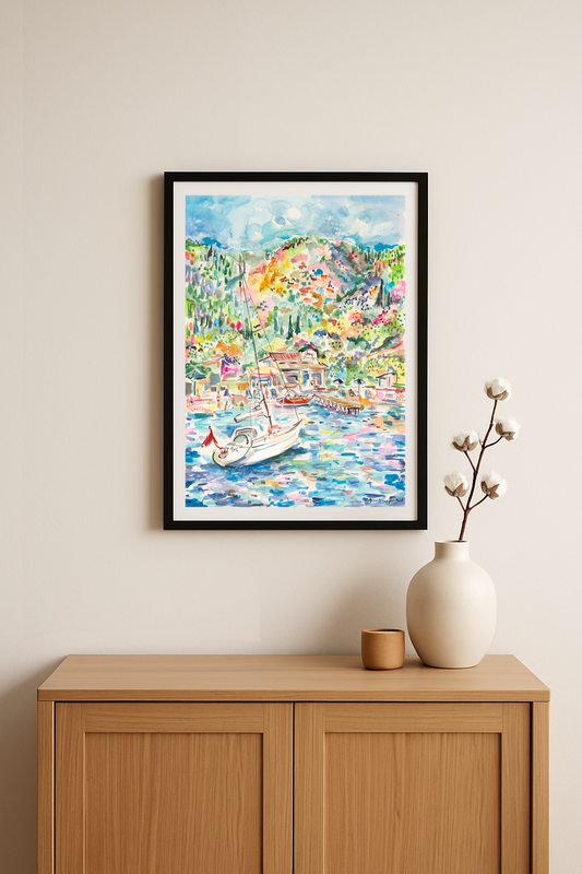 Shop my beautiful collection of Corfu inspired prints that capture the vibrant beauty of summer in Agni Bay.