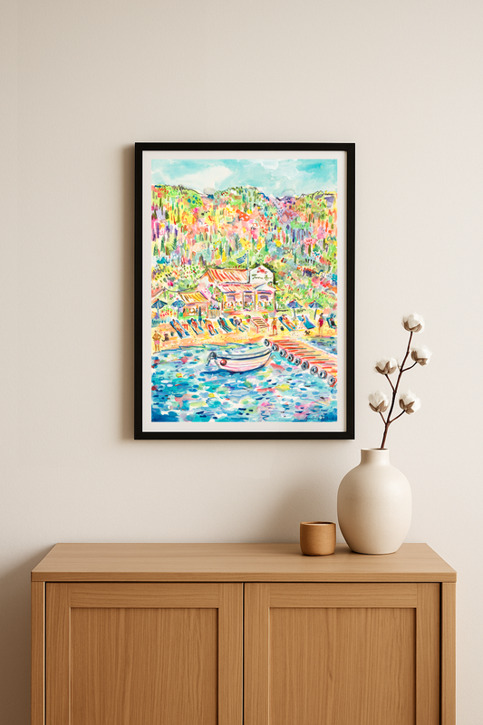 Shop my beautiful collection of Corfu inspired prints that capture the vibrant beauty of summer in Agni Bay.